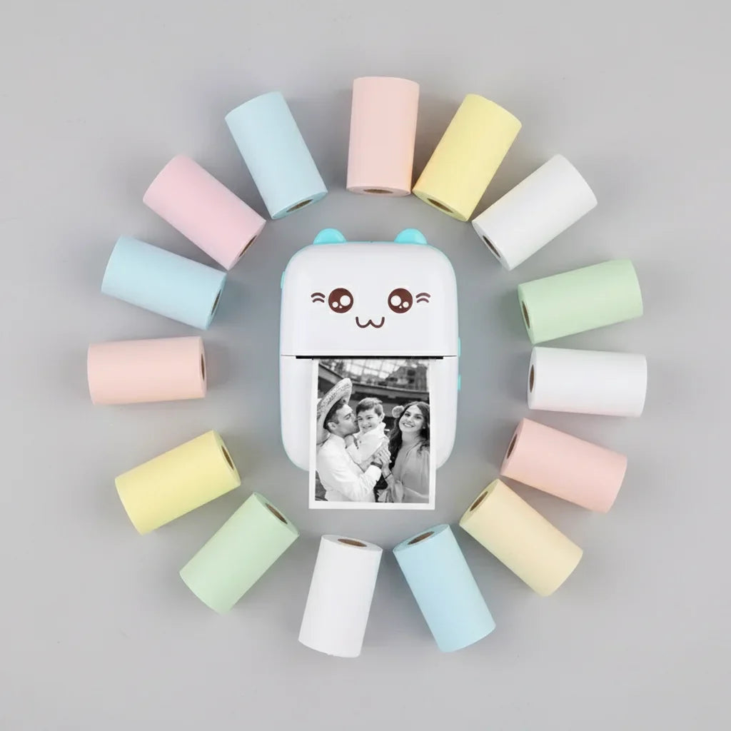 La bonne nouvelle, c'est que notre adorable Mini Imprimante Chat est thermique ! Pas besoin d'encre salissante, elle imprime grâce à la chaleur. Il vous faut juste des rouleaux de papier thermique, disponibles en plusieurs couleurs pour toutes vos envies créatives. C'est simple, économique et tellement pratique !